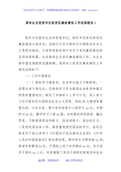 / 国有企业党委书记抓党风廉政建设工作述职报告1