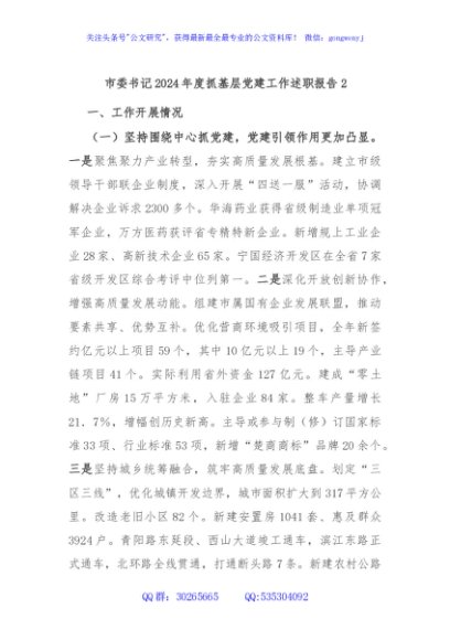 / 市委书记2024年度抓基层党建工作述职报告2