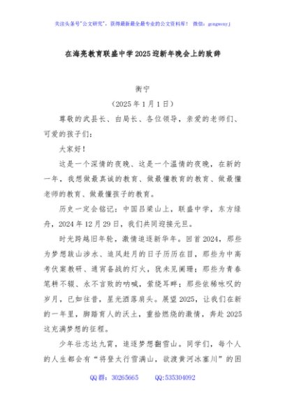 / 在海亮教育联盛中学2025迎新年晚会上的致辞