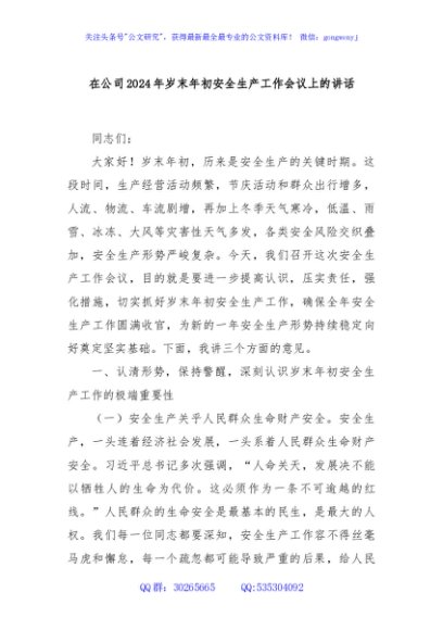 / 在公司2024年岁末年初安全生产工作会议上的讲话