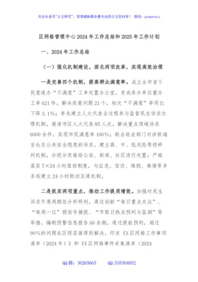 / 区网格管理中心2024年工作总结和2025年工作计划