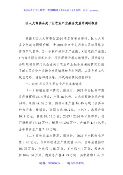 / 区人大常委会关于区农业产业融合发展的调研报告