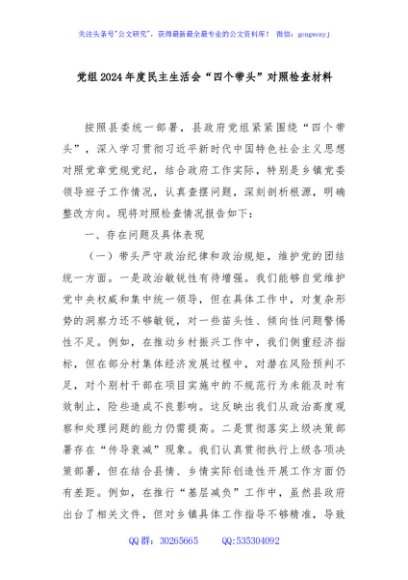 / 党组2024年度民主生活会“四个带头”对照检查材料