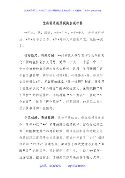 / 党委候选委员现实表现材料