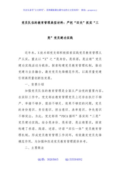 / 党员队伍的教育管理典型材料:严把“四关”抓实“三亮”党员建功实践
