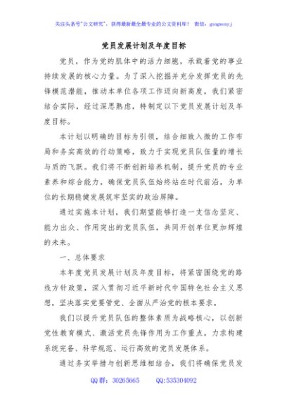 党员发展计划及年度目标
