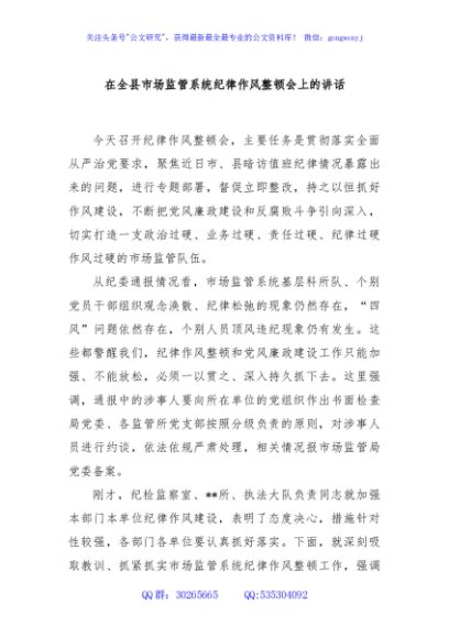 / 在全县市场监管系统纪律作风整顿会上的讲话