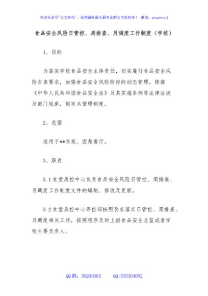 食品安全风险日管控、周排查、月调度工作制度(学校)