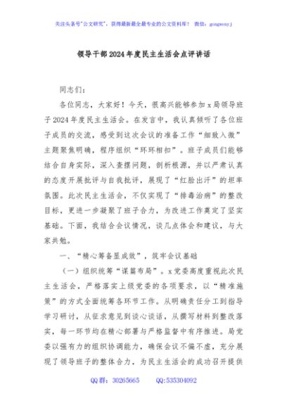 市直机关单位领导干部2024年度专题民主生活会、组织生活会对照检查材料(四个带头)