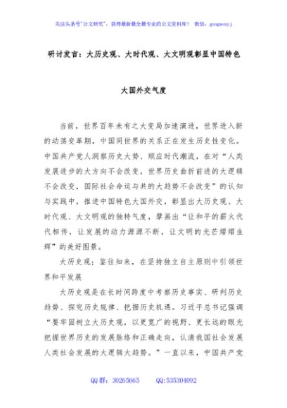 / 研讨发言:大历史观、大时代观、大文明观彰显中国特色大国外交气度