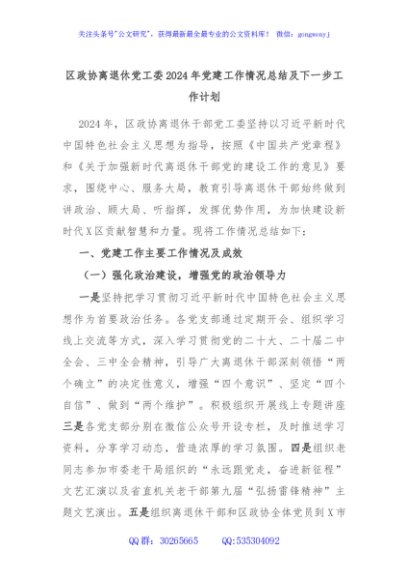 / 区政协离退休党工委2024年党建工作情况总结及下一步工作计划