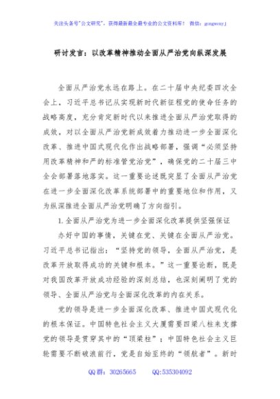 / 研讨发言:以改革精神推动全面从严治党向纵深发展