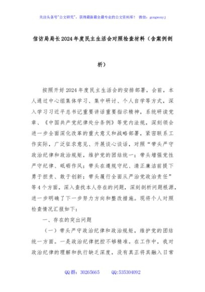 / 信访局局长2024年度民主生活会对照检查材料(含案例剖析)