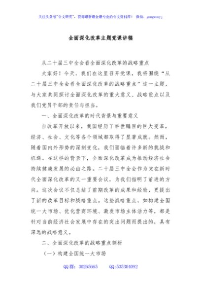 / 全面深化改革主题党课讲稿
