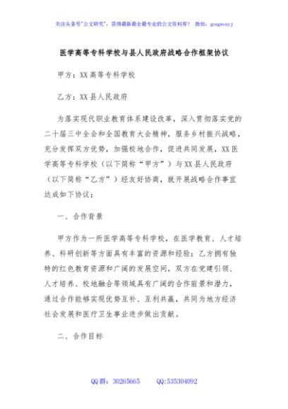 / 医学高等专科学校与县人民政府战略合作框架协议