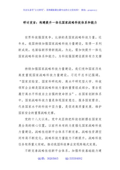 / 研讨发言:构建提升一体化国家战略科技体系和能力