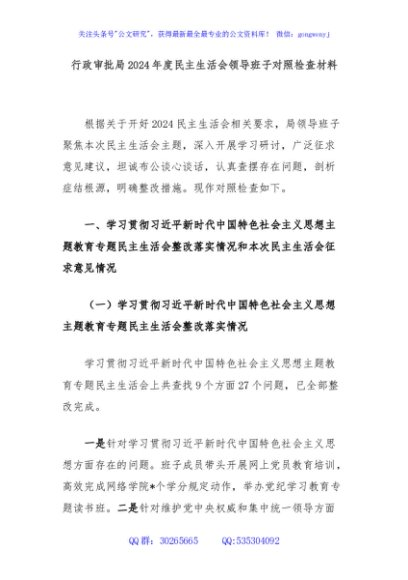 / 行政审批局2024年度民主生活会领导班子对照检查材料