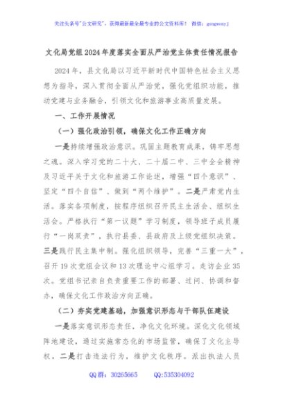 文化局党组2024年度落实全面从严治党主体责任情况报告