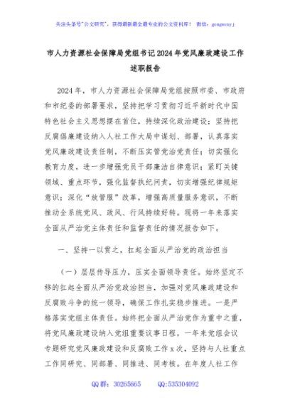 / 市人力资源社会保障局党组书记2024年党风廉政建设工作述职报告