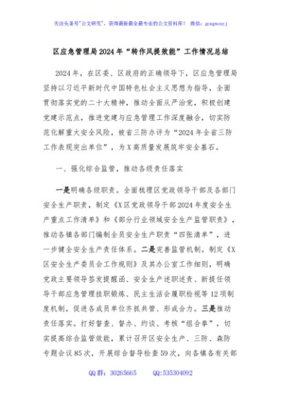 / 区应急管理局2024年“转作风提效能”工作情况总结