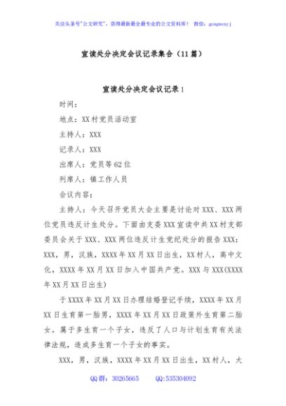 / (11篇)宣读处分决定会议记录集合