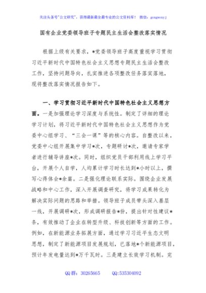 / 国有企业党委领导班子专题民主生活会整改落实情况