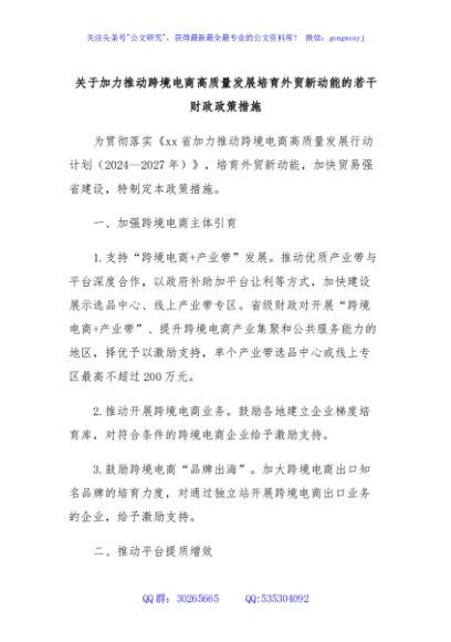 / 关于加力推动跨境电商高质量发展培育外贸新动能的若干财政政策措施