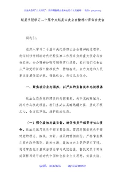 / 纪委书记学习二十届中央纪委四次全会精神心得体会发言