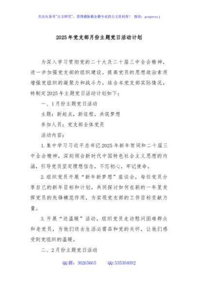 / 2025年党支部月份主题党日活动计划