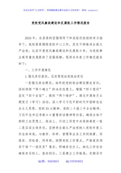 / 党校党风廉政建设和反腐败工作情况报告