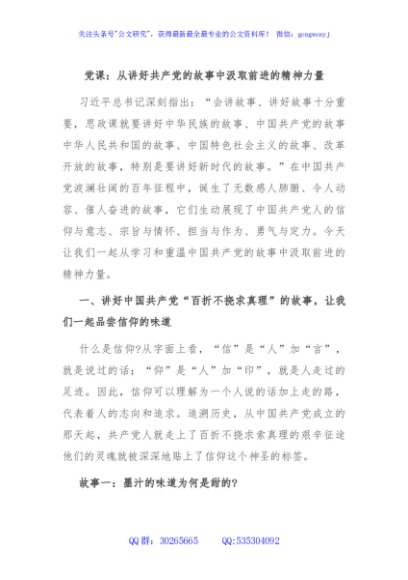 / 党课:从讲好共产党的故事中汲取前进的精神力量