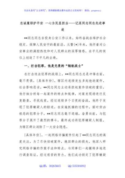 / 忠诚履职护平安 一心为民显担当——记某同志同志先进事迹