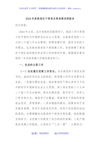 / 2024年度离退休干部党支部党建述职报告