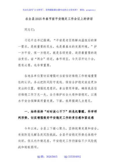 / 在全县2025年春节前平安稳定工作会议上的讲话