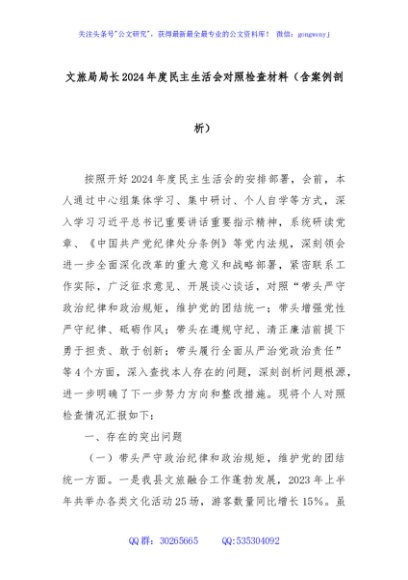 / 文旅局局长2024年度民主生活会对照检查材料(含案例剖析)