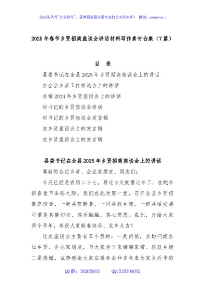/ (7篇)2025年春节乡贤招商座谈会讲话材料写作素材合集