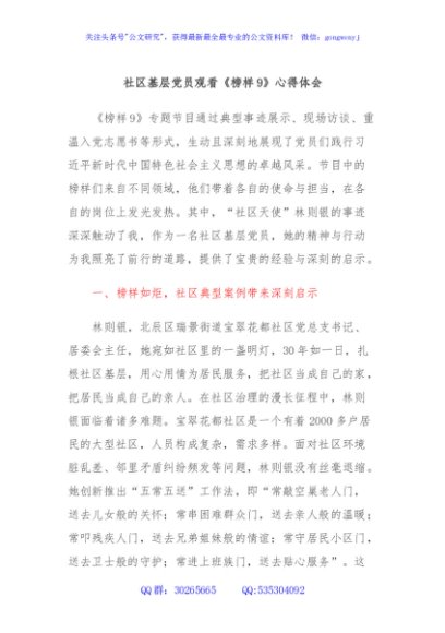 / 社区基层党员观看《榜样9》心得体会