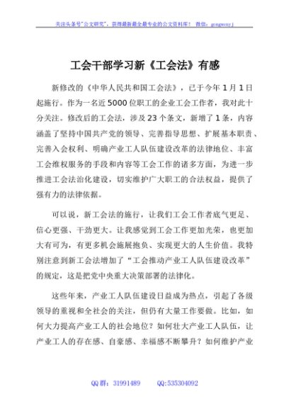 / 工会干部学习新《工会法》有感(2篇)