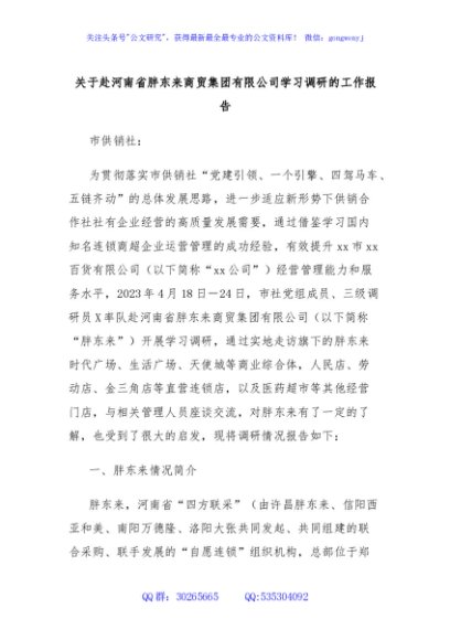 关于赴河南省胖东来商贸集团有限公司学习调研的工作报告