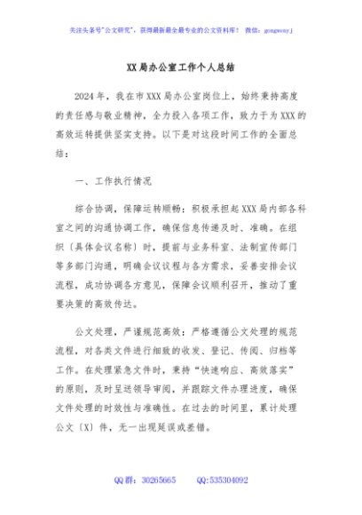 XX局办公室工作个人总结