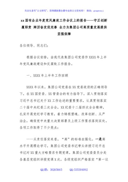 / xx国有企业年度党风廉政工作会议上的报告——守正创新履职责 踔厉奋发促完善 全力为集团公司高质量发展提供坚强保障