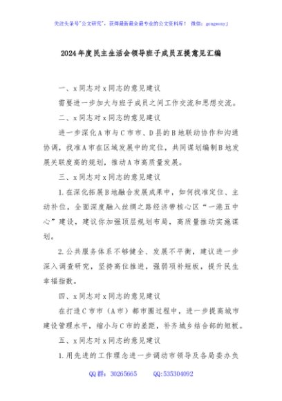 / 2024年度民主生活会领导班子成员互提意见汇编