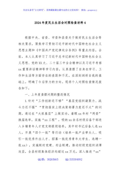 / 2024年度民主生活会对照检查材料4