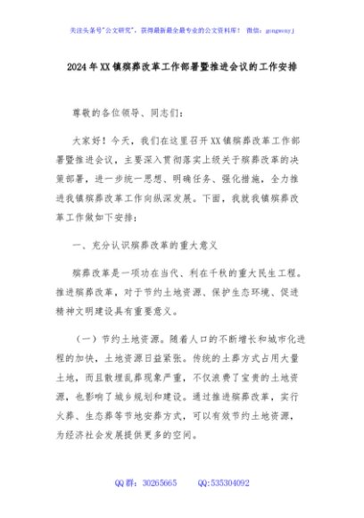 / 2024年XX镇殡葬改革工作部署暨推进会议的工作安排