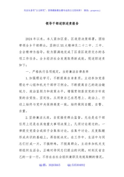 / 领导干部述职述责报告