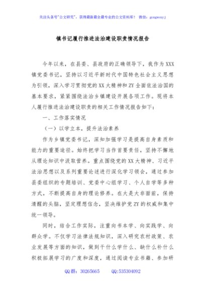 镇书记履行推进法治建设职责情况报告