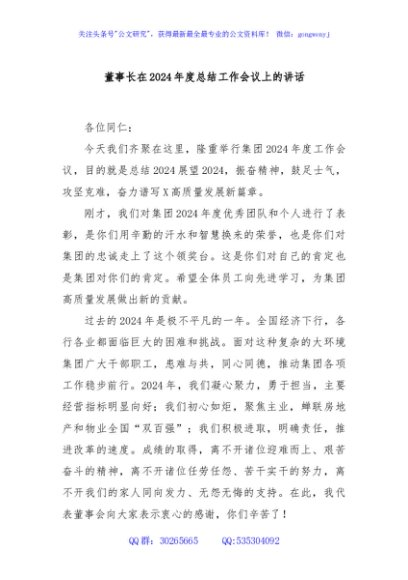 / 董事长在2024年度总结工作会议上的讲话