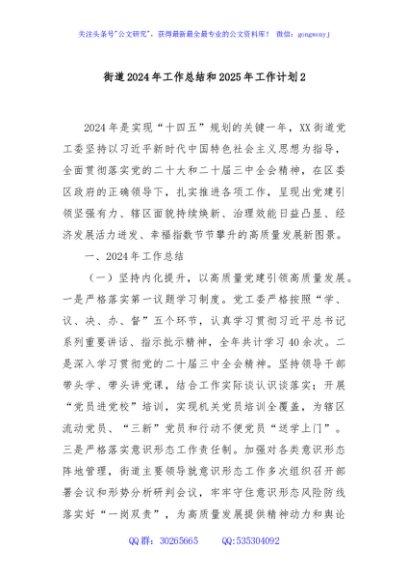 / 街道2024年工作总结和2025年工作计划2