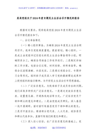 / 某局党组关于2024年度专题民主生活会召开情况的报告
