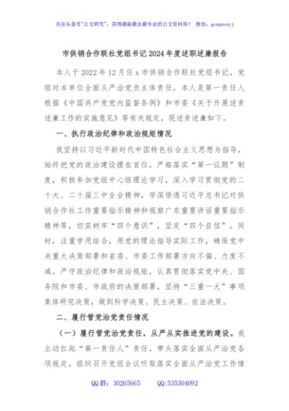 / 市供销合作联社党组书记2024年度述职述廉报告